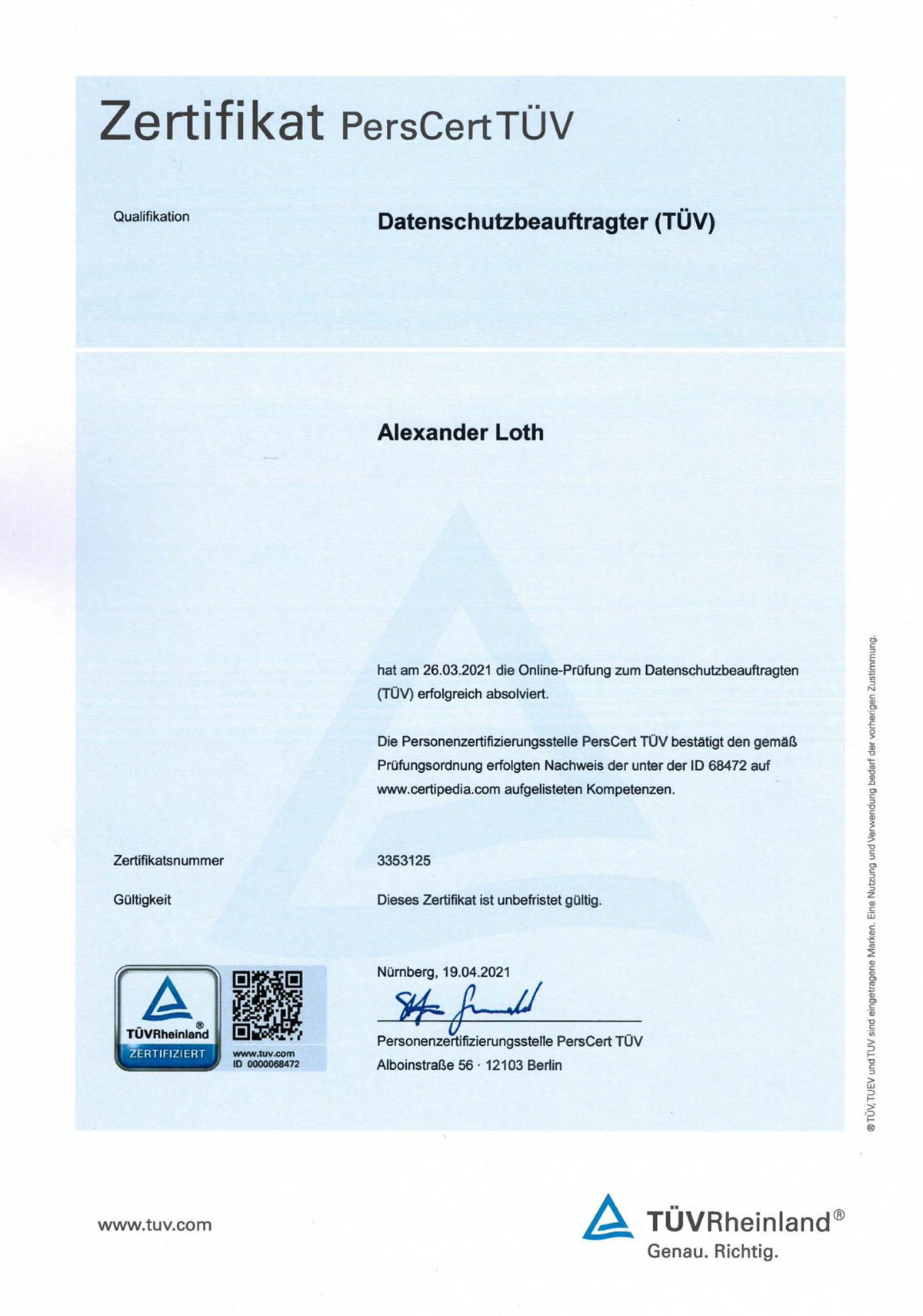 “Data Protection Officers (TÜV)” have assured knowledge in the sense of Art. 37 (5) EU Data Protection Basic Regulation. They are familiar with the legal provisions on data protection (e.g. EU-DSGVO, new BDSG), the tasks, rights and duties of the data protection officer and the components of an efficient data protection management system. You are able to implement and maintain the basic features of such a system.
